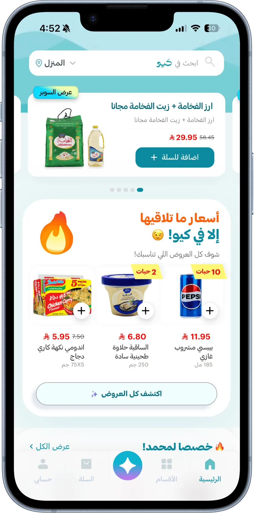 كيو تجمع العروض، أقل الأسعار، والأقسام الجاهزة في تجربة واضحة وبسيطة—بدون أي زحمة أو تعقيد