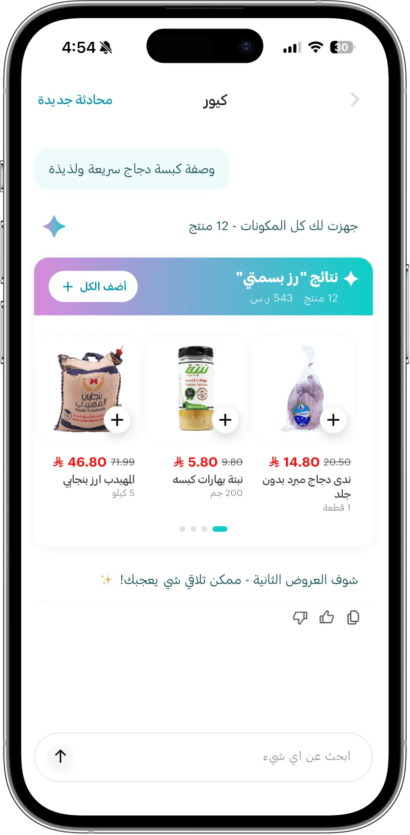 ذكاء Q هو المساعد الذكي الذي يفهم احتياجاتك فوراً، يقترح المنتجات، ويبسّط تجربة التسوّق بالكامل—بشكل فوري، سلس، وشخصي لكل مستخدم.